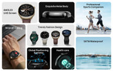 این ساعت هوشمند از بیش از 150 حالت ورزشی از قبیل پیاده روی، دو، اسب سواری، بسکتبال، فوتبال، دوچرخه سواری، گلف و بسیاری ورزش دیگر پشتیبانی می کند و به راحتی می توانید حرکات ورزشی خود را پیگیری کنید. از جمله سنسورهای سلامتی در این ساعت نیز می تواند سنسور ضربان قلب، میزان اکسیژن خون، پایش کیفیت خواب، میزان استرس و تمرین تنفس صحیح را نام برد.
